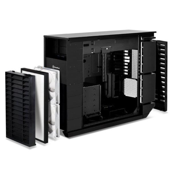 Per superare queste limitazioni, il team Ricerca e Sviluppo SilverStone ha nuovamente sfidato e sovvertito le convenzioni proponendo il telaio Mammoth MM01. Invece di sigillare completamente il flusso d'aria per evitare l’accesso della polvere, MM01 ha un design parzialmente sigillato con filtraggio attivo. Per evitare che la polvere acceda al telaio, è utilizzato un filtro HEPA per coprire l'area di aspirazione dell'aria, rendendo MM01 il primi telaio per computer al dettaglio che incorpora questa tecnologia di filtraggio riconosciuta a livello internazionale. Utilizzato di frequente nelle camere bianche (cleanroom) delle fabbriche, sale operatorie degli ospedali o in strutture che richiedono ambienti senza polvere, il filtro HEPA ha una capacità di rimozione delle particelle sospese nell'aria di gran lunga superiore a quella disponibile in apparecchiature informatiche tradizionali. Affinché questo funzioni senza soffocare il flusso d'aria, sono state selezionate due ventole Air Penetrator AP182 per l'uso su MM01. Con una valutazione combinata fino a 340CFM, forniscono una potenza di trazione dell’aria simile a tipici ventilatori casalinghi e permettono di mantenere il corretto raffreddamento dei componenti di fascia alta, nonostante la presenza dei filtri altamente restrittivi HEPA. A complemento della formidabile capacità di mantenere a bada la polvere, MM01 ha anche delle prese d’aria frontali e posteriori uniche e inclinate verso il basso per impedire ai liquidi di penetrare dalla parte superiore del telaio. Questo design semplice ma efficiente, aiuta MM01 a sopportare le condizioni molto più severe richieste dai professionisti che lavorano in luoghi normalmente non adatti per i computer. Per chi sceglie di utilizzare MM01 in casa o in ufficio, il suo livello superiore di filtraggio potrebbe potenzialmente contribuire a ripulire anche l'ambiente di lavoro!